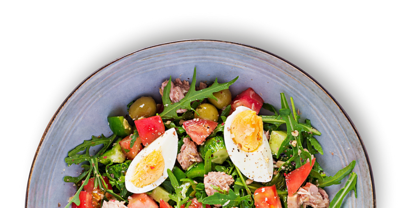 Local artisan greens with cherry tomatoes, cool cucumber, red onion, and fresh herbs, dressed simply with lemon and cracked pepper.